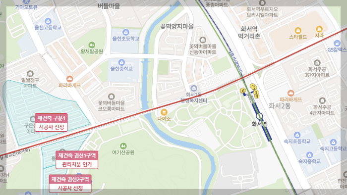 - 역 북쪽은 구축, 용적률 높아 재건축 어려울것으로 예상